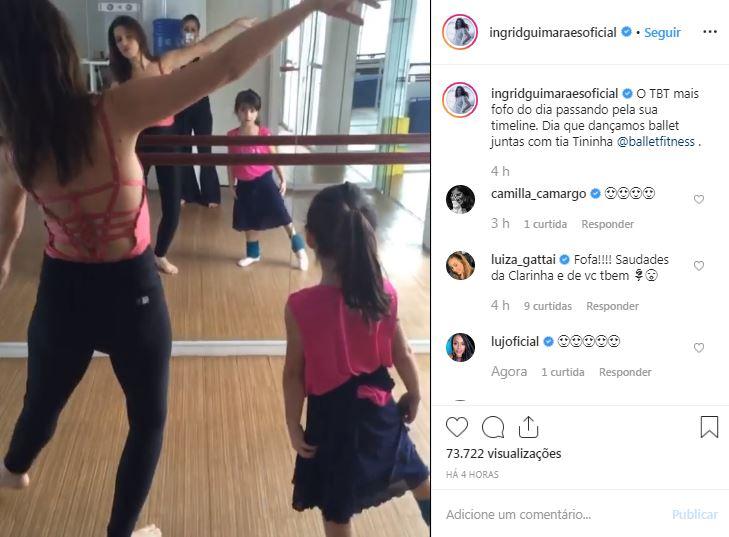 Ingrid Guimarães se divertiu e provou que é muito mãe coruja ao ver um vídeo da filha dançando ballet. Na quinta-feira, 12 de dezembro, a atriz entrou na onda do #tbt e publicou um vídeo no Instagram dançando ballet ao lado da filha, Clara, de 10 anos.