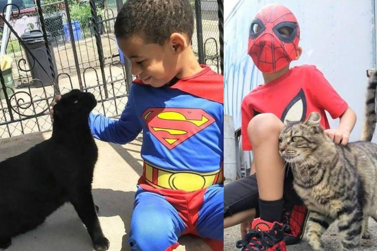 As crianças têm dado um show de empatia e ensinado os adultos sobre o amor durante esse isolamento social. Shon Griffin não ficou de fora. O garoto, de apenas 5 anos, viralizou nas redes sociais após provar que é um verdadeiro herói da vida real! A criança, que mora nos Estados Unidos, vem utilizando o tempo livre para ajudar gatos que moram na rua de um jeito super especial: vestido de super-herói.