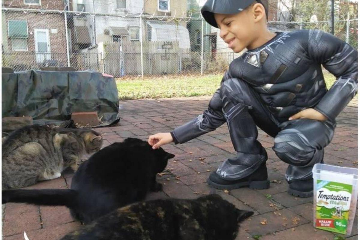 Herói da vida real! Criança se fantasia para cuidar de gatos abandonados nos EUA (Foto: reprodução Facebook / Gatos&Gatos)