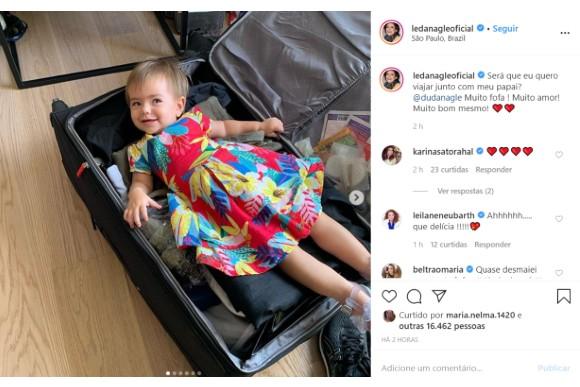 “Será que eu quero viajar junto com meu papai? @dudanagle Muito fofa! Muito amor! Muito bom mesmo! ❤️❤️”, escreveu na legenda. Não demorou muito para a publicação render várias curtidas e comentários.