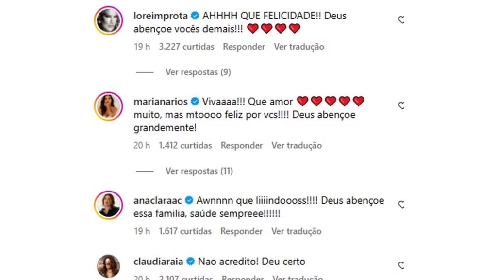 A novidade foi recebida com muito carinho e apoio de outros artistas e figuras públicas, como Fernanda Souza, que parabenizou o ex-marido, Thiaguinho, desejando saúde e amor à nova família. No entanto, o comentário de Claudia Raia chamou a atenção de internautas por seu tom de surpresa e provocou uma série de questionamentos.