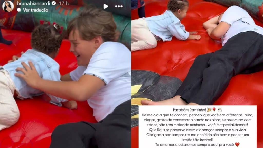 Além da mensagem, Bruna também compartilhou um vídeo encantador em que a pequena Mavie, sua filha com Neymar, aparece interagindo com o irmão mais velho. O momento reforçou a união da família e o carinho entre os irmãos.
