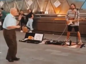 Vovô dançarino dá um show ao som de um artista de rua e vídeo viraliza