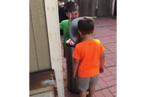 Meninos brincam de bater o rosto na lata de lixo e vídeo viraliza
