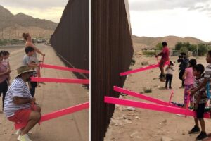 Criança Professores constroem gangorras na fronteira dos Estados Unidos com o México e vídeo viraliza