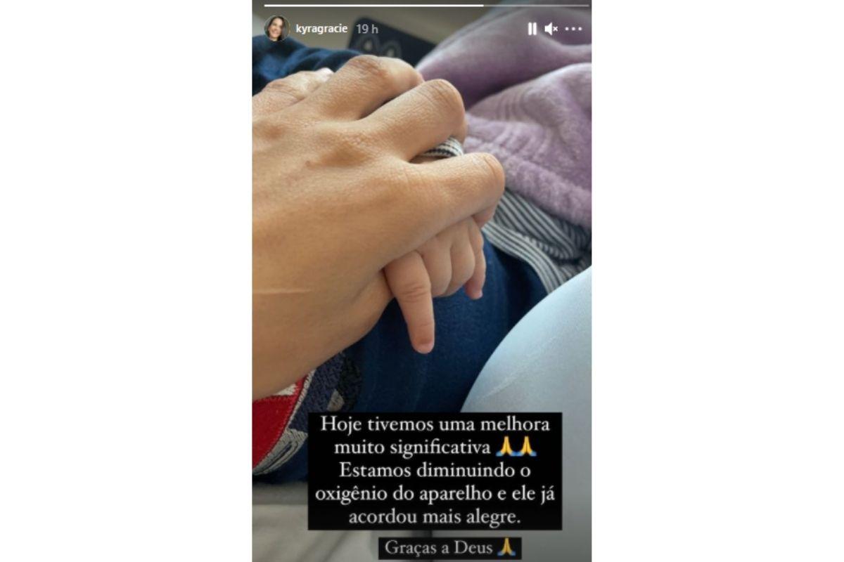 Kyra contou aos seguidores sobre o quadro de saúde do filho nos stories do Instagram (Foto: Reprodução/ Instagram)