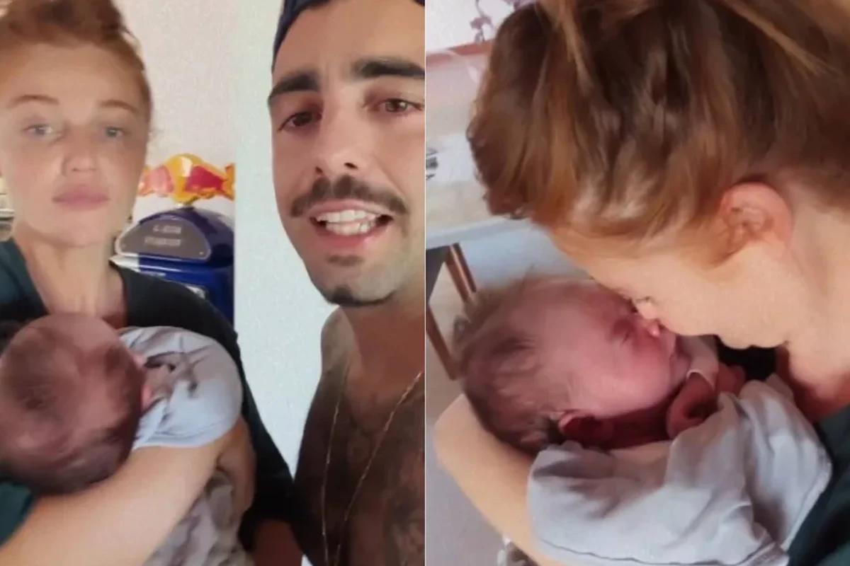 O casal mostrou pela primeira vez a recém-nascida que foi diagnosticada durante a gestação com gastrosquise, uma malformação gastrointestinal congênita, que a fez passar por cirurgias após seu nascimento. “Não tem nada melhor na vida do que chegar em casa e ver isso aqui. Olha minha sogra lá no fundo, não vai mais embora [risos]”, disse Scooby. “Olha aqui a mãozinha, fofa”, se derreteu.