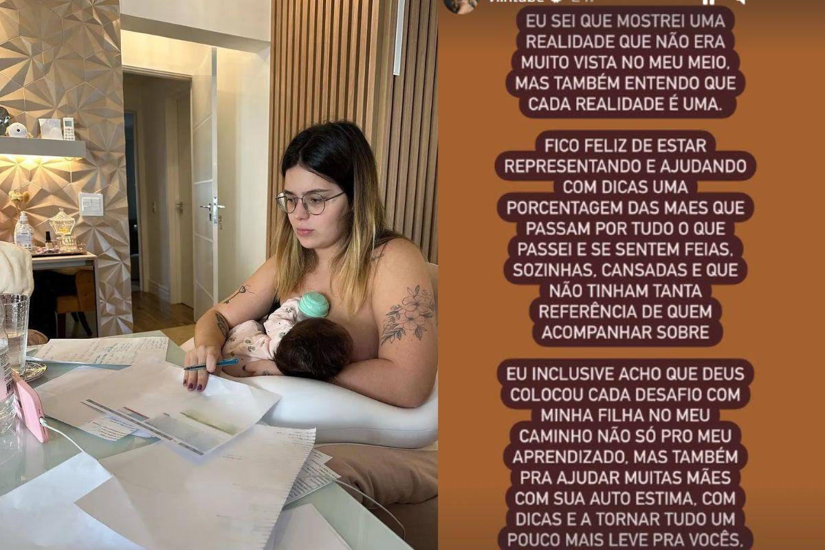 Na noite da última quinta-feira, dia 25 de maio, a influenciadora digital Viih Tube, de 22 anos, usou as redes sociais para compartilhar novos registros com a filha. Lua, de 1 mês, fruto do atual relacionamento com o Ex-BBB Eliezer, de 33 anos. Nas imagens ela aparece amamentando a bebê enquanto está trabalhando.