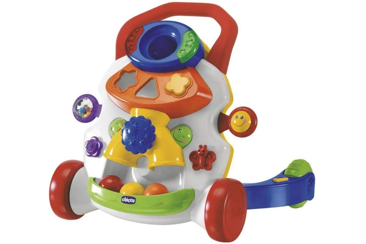 Um brinquedo 2 em 1: primeiros passos e centro de atividades com luzes e sons, que estimulam o desenvolvimento do bebê. Também conta com jogos, luzes e efeitos sonoros, além de um sensor de movimento que acompanha o bebê.