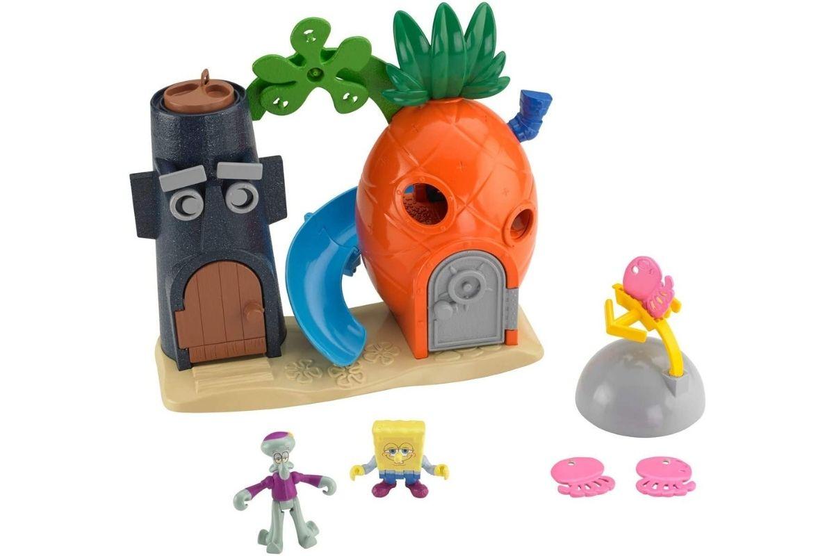 Com esse brinquedo, a Fenda do Biquíni ganha vida. Seu filho pode brincar com as figuras do Bob Esponja, Lula Molusco e do Patrick, que vêm inclusas.