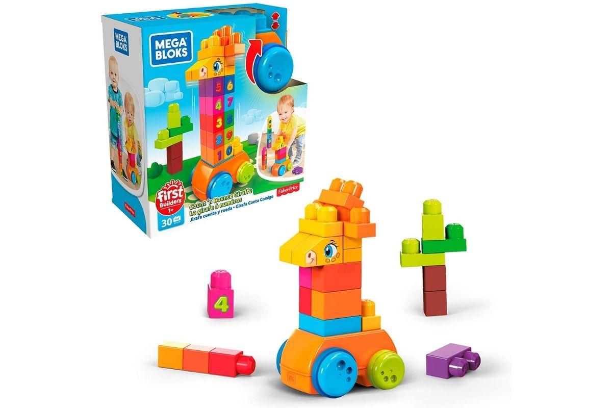 Ajuda a desenvolver as habilidades motoras ao empilhar blocos grandes, fáceis de manusear. Quanto mais números adicionar, maior será a girafa.