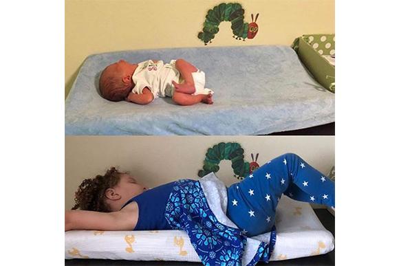 Hoje, ela está bem maior do que nas imagens, mas ainda assim continua presente na rede social da mãe enchendo o feed de fofura. Dá uma olhada nessa comparação do antes e depois da menina: