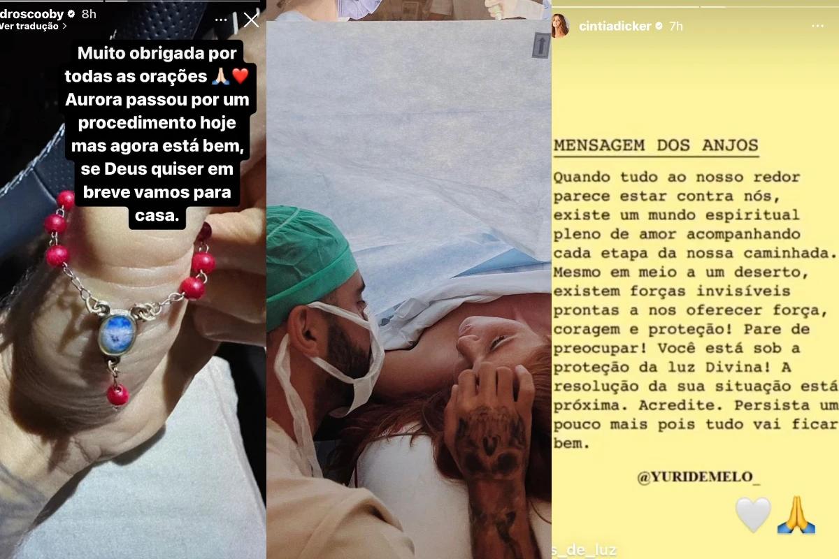 Nos stories, o pai agradeceu e mostrou apenas a sua  mão segurando um terço. “Muito obrigada [sic] por todas as orações. Aurora passou por um procedimento hoje, mas agora está bem. Se Deus quiser, em breve vamos para casa”.
