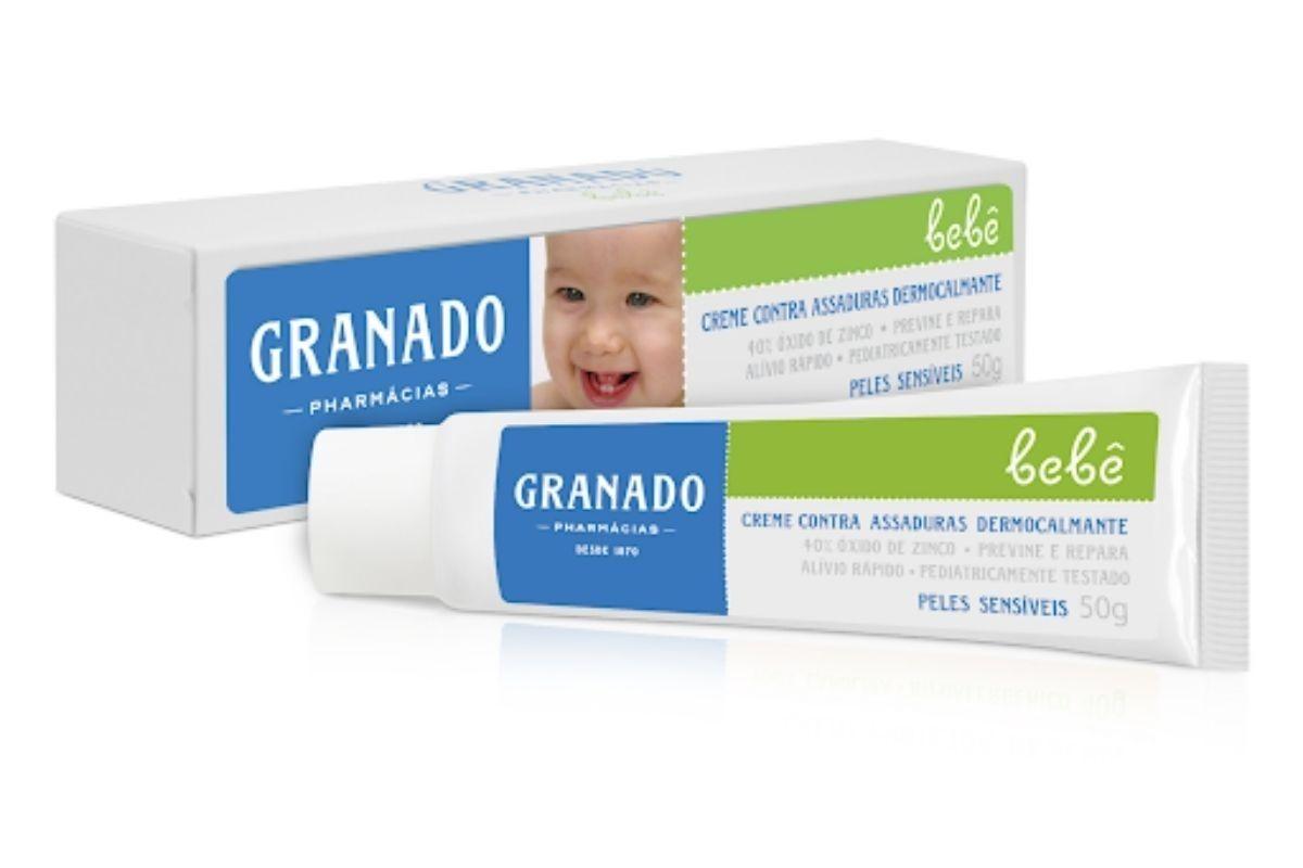 O creme contra assaduras dermocalmante da Granado repara a pele do bebê e traz alívio rápido e conforto imediato. Possui uma versão de 50g e também de 300g, oferecendo mais praticidade para a família. Além de ter toque seco, espalha superbem e é fácil de remover. É formulado com 40% óxido de zinco, oferecendo uma potente ação secativa. Também é enriquecido com D-pantenol, alantoína, óleo de amêndoa doce, proteínas do trigo, da aveia e amêndoa doce e vitamina E. Pediátrica e dermatologicamente testados. Sem perfume, corantes e parabenos e livre de ingredientes de origem animal.