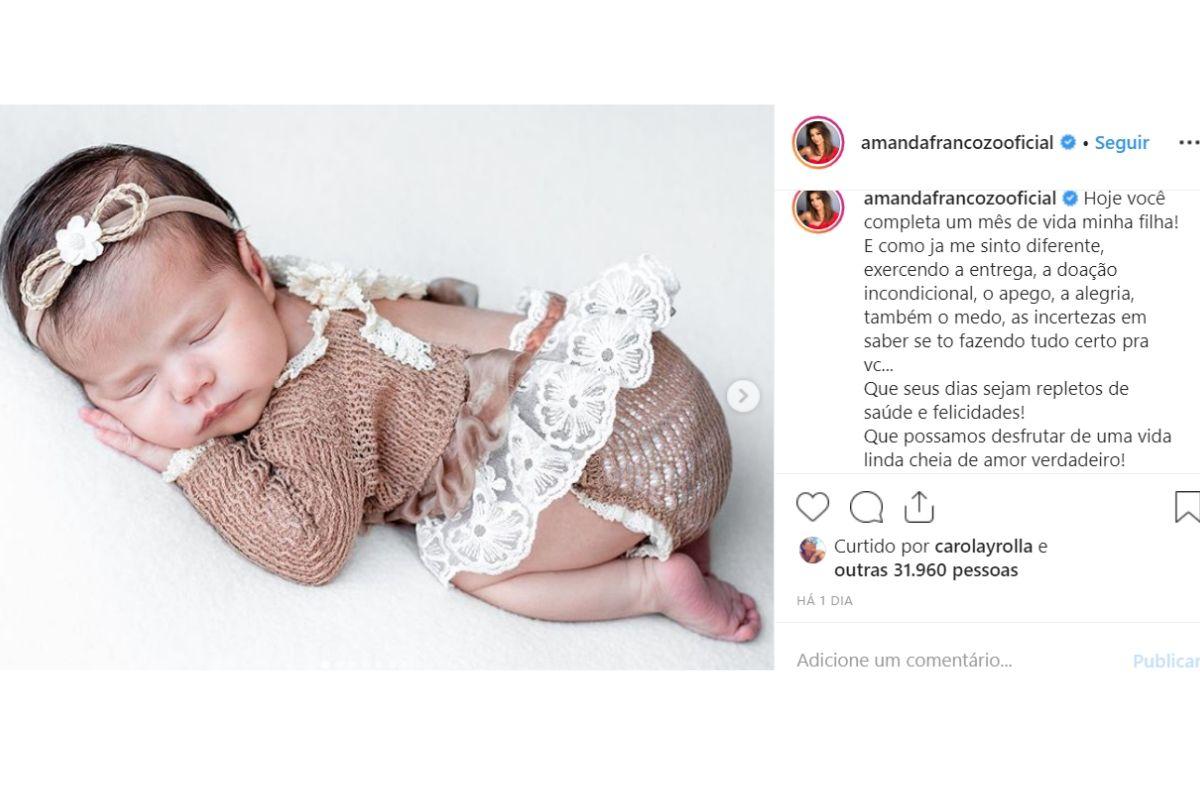 Vitória completou um mês no último sábado, 14 de setembro (Foto: Reprodução/Instagram @amandafrançozooficial)
