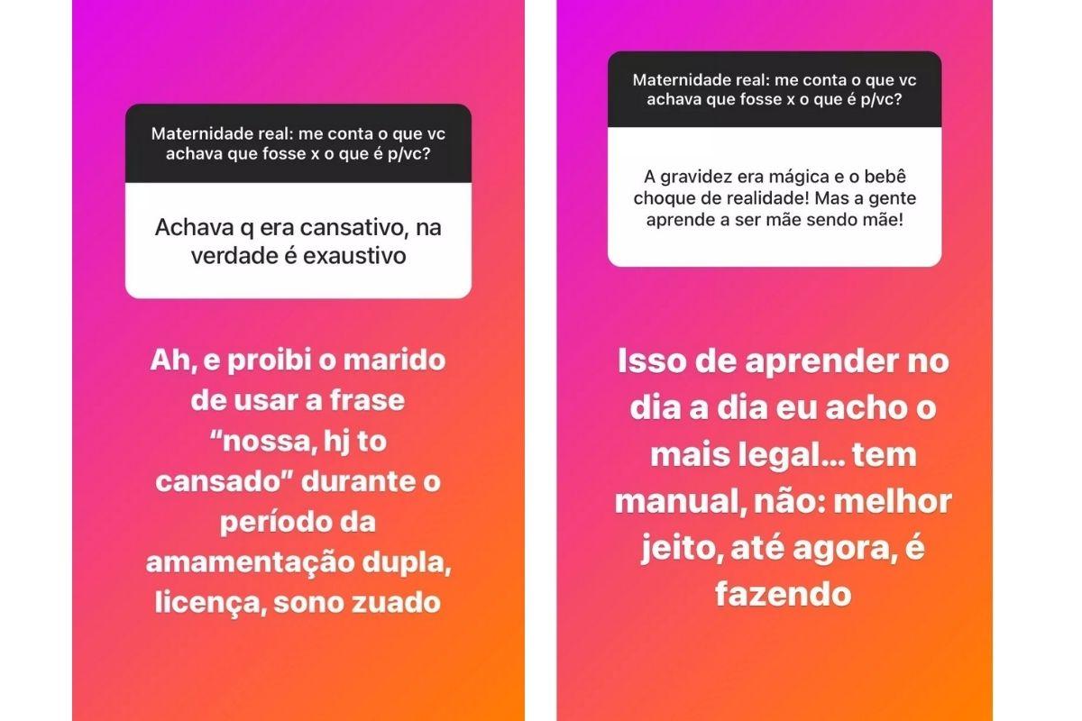 “Sabe que eu já contei que, na gravidez, fizeram tanto terror psicológico comigo (desde ‘sua vida vai acabar’, ‘nunca mais você ai dormir’ e outros), que não romantizei a gravidez e estava esperando um caosZão. Mas, acho que por isso, quando vi que era um caos ok fiquei de boa. Caoszinho duplo kkkkk”, disse.