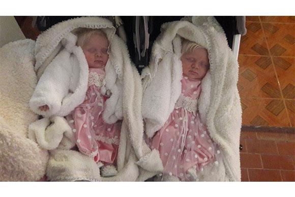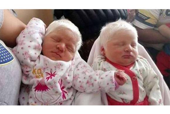 Albinismo é uma condição que causa problema na produção de melanina, causando ausência de pigmentação na pele, podendo alcançar até o cabelo e os olhos! Não é possível identificar o distúrbio antes do nascimento, mas a família está encantada com as gêmeas!