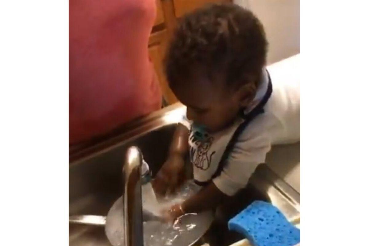 Nos Estados Unidos o menino Chase, de 9 meses, ele viralizou em um vídeo na redes sociais e quem mais 4 milhões de visualizações após a sua avó deixa-lo lavar os talheres.