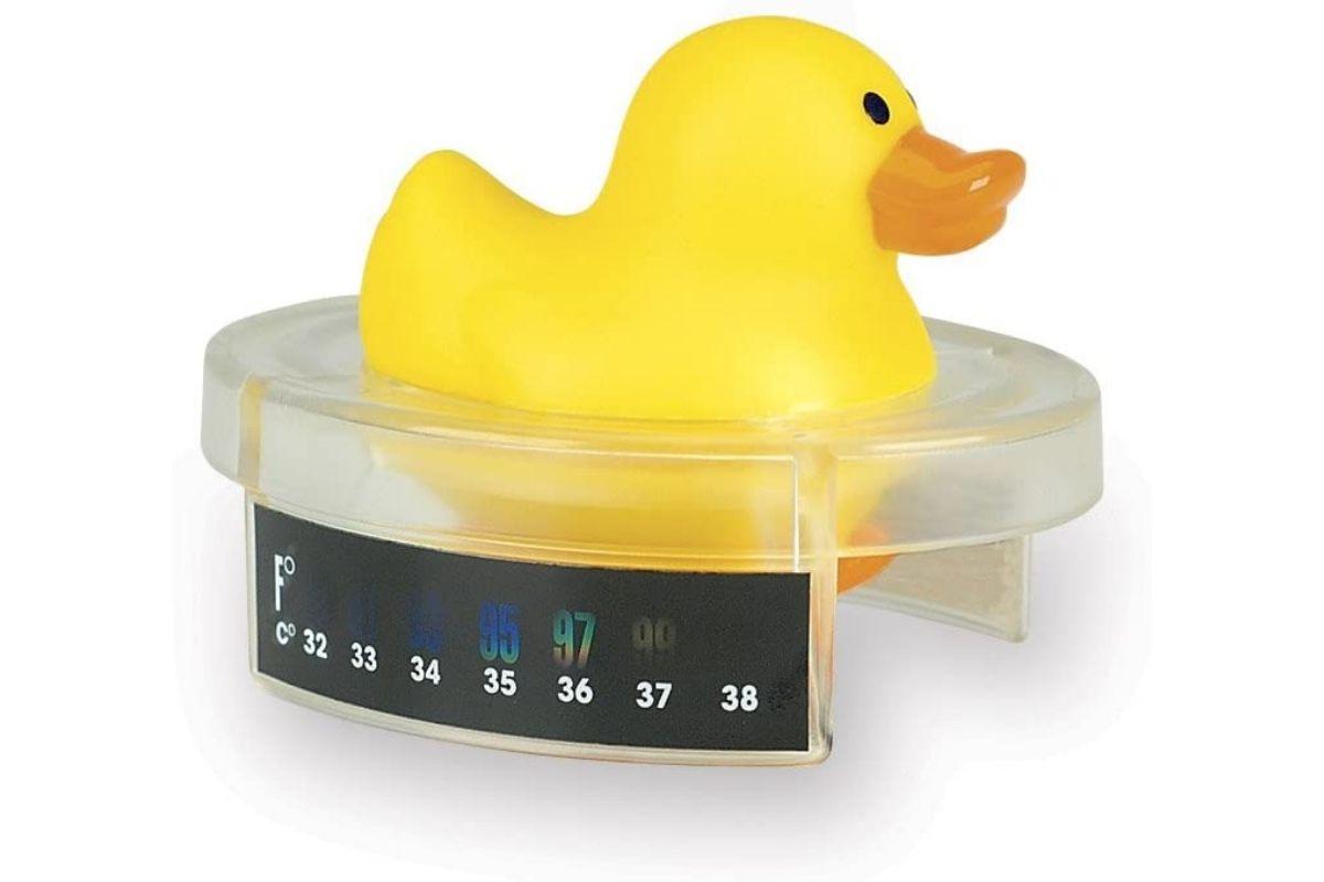 Em formato de patinho, distrai a criança durante o banho e indica a temperatura da água, de 32ºC a 38ºC, em seu indicador colorido.