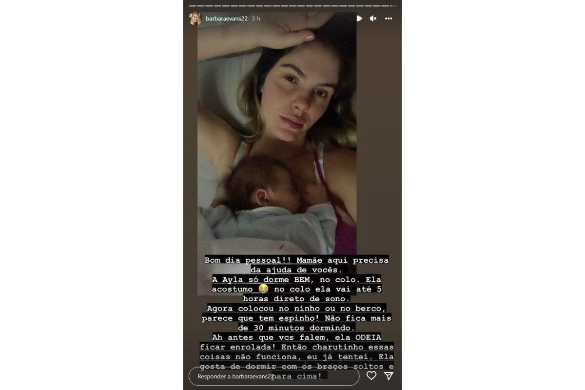 Bárbara Evans contou que a filha só quer dormir no colo agora (Foto: Reprodução/Instagram @barbaraevans22)
