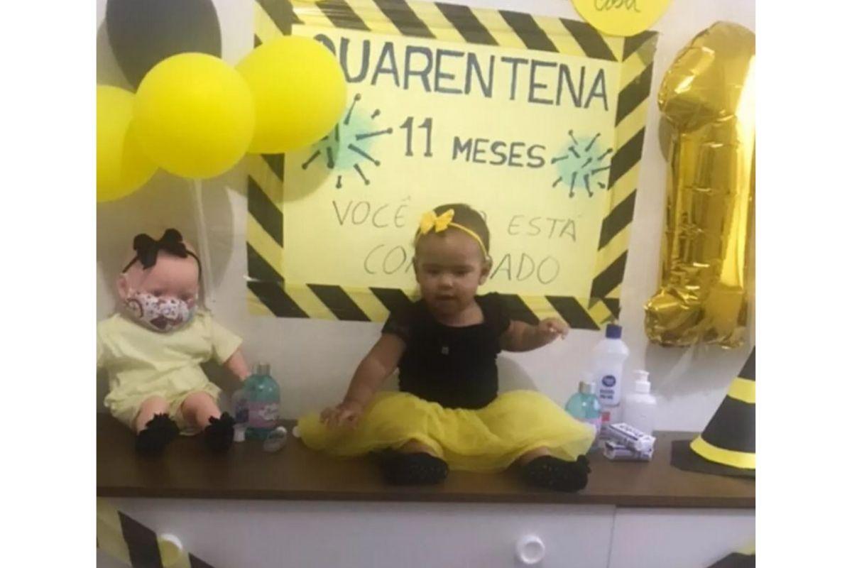 Joanna Brandim, que tem apenas 11 meses de vida, teve a oportunidade de celebrar seu “mêsversário” de uma maneira diferente na última semana. Sua mãe Juliana Brandim estava procurando uma forma de comemorar o mês, mesmo sem a presença de convidados e da família e foi assim que surgiu a festa com o tema “Quarentena“! Utilizando decorações como fitas de isolamento, frascos de álcool em gel, máscaras e até mesmo um cartaz com a frase: “Você não está convidado” e “Lave as mãos!“, a bebê pode aproveitar seu dia especial sem deixar de seguir as recomendações de saúde.