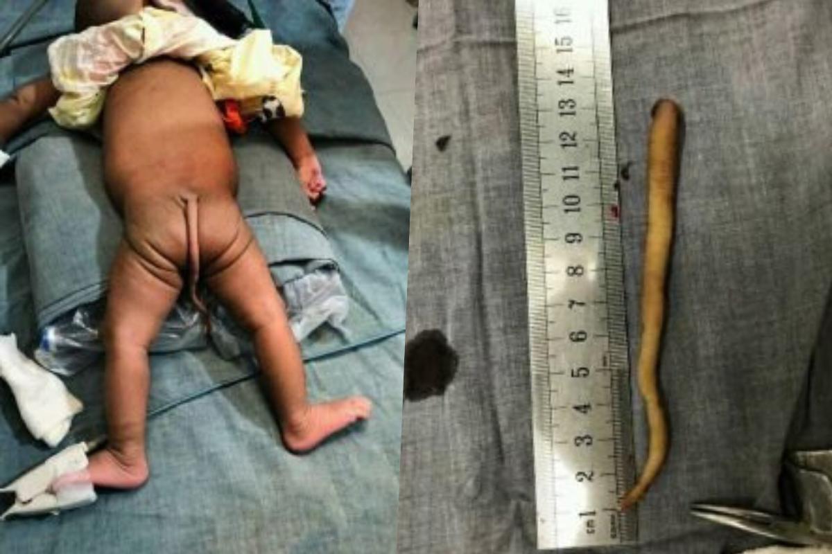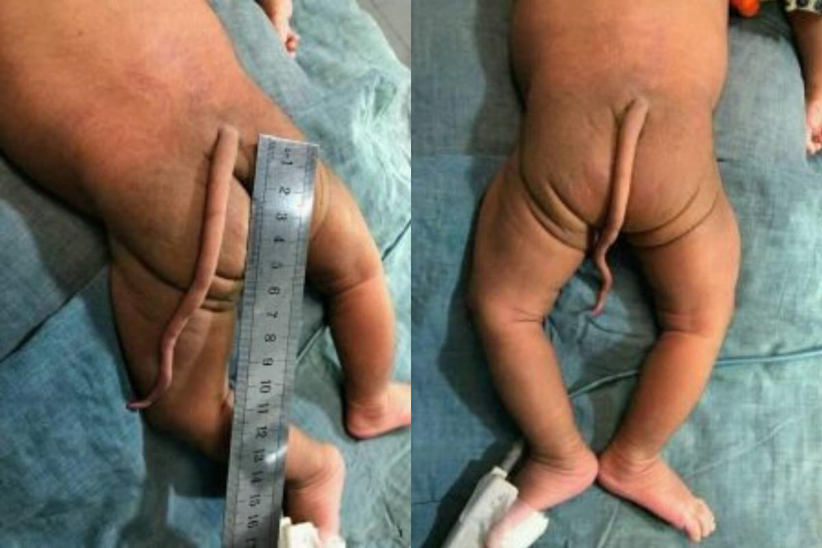 O erro genético é tão incomum que até agora existem apenas 30 casos de bebês que nasceram com a “cauda vestigial” e em toda a história do planeta há registros de apenas 100 casos parecidos com este.