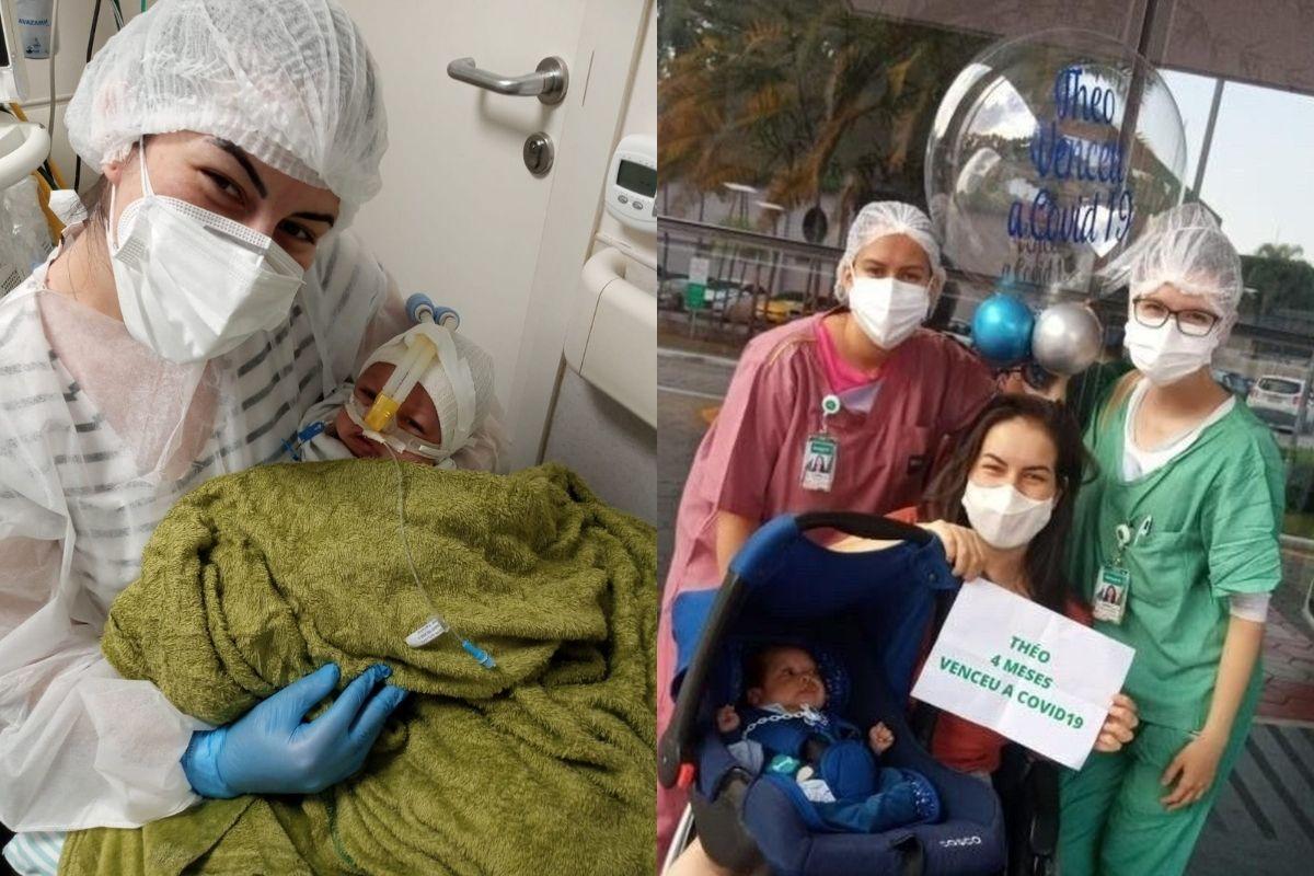Depois de ficar 14 dias entubado e 27 dias internado, Theo finalmente recebeu alta e pôde ir para a casa juntamente com a mãe e o irmão gêmeo Arthur. A mãe contou que ele ainda não está 100% mas já está até brincando.