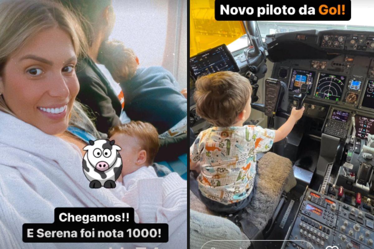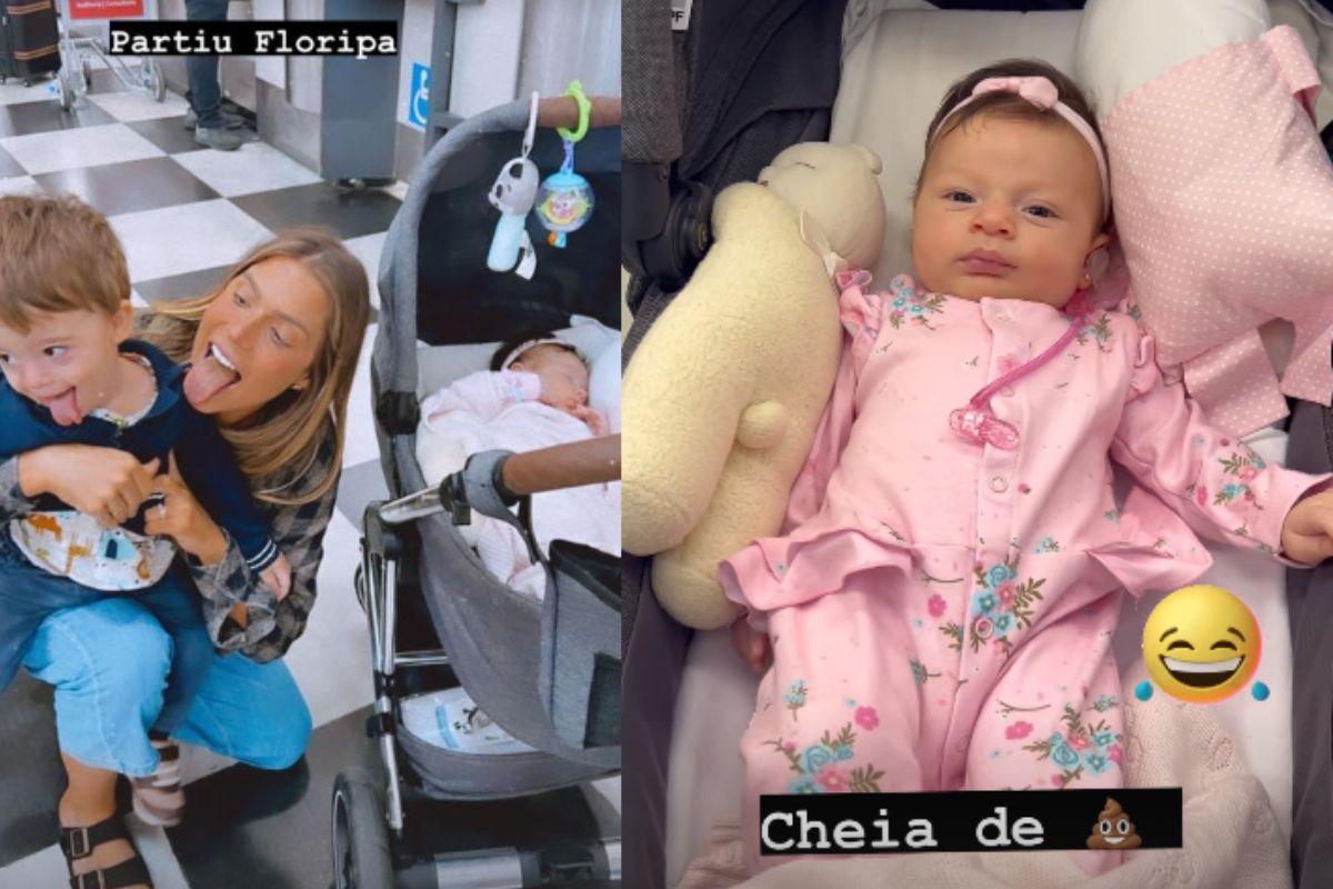 No fim do voo ela mostrou como ficou o estado da filha após o seu primeiro voo.”Gente, olha aqui. Isso Serena, toda cagada”, disparou Bia, mostrando a roupa da bebê, que estava suja. “Estragou o look da viagem”, relatou a mãe.