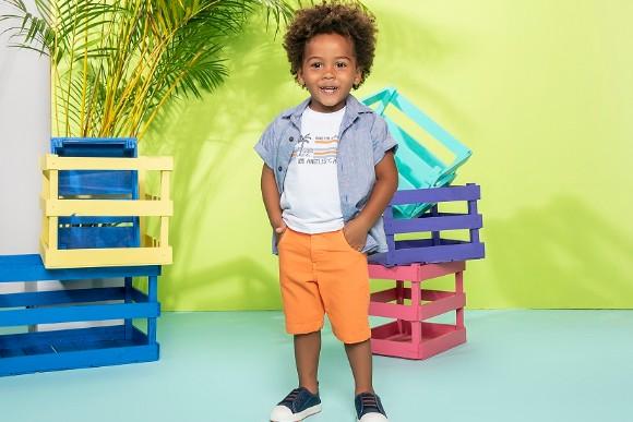 A coleção masculina é inspirada no Relax Summer, com influências modernas e casuais, seguindo uma linha “mini boy” para atender todos os gostos.