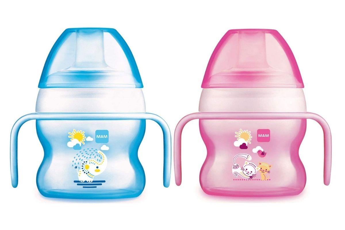 Possui alças removíveis e antiderrapantes, garantindo melhor aderência, e tampa protetora higiênica. Recomendado para facilitar o momento de transição do copo com bebedor para o modelo convencional.