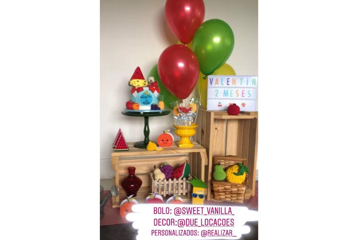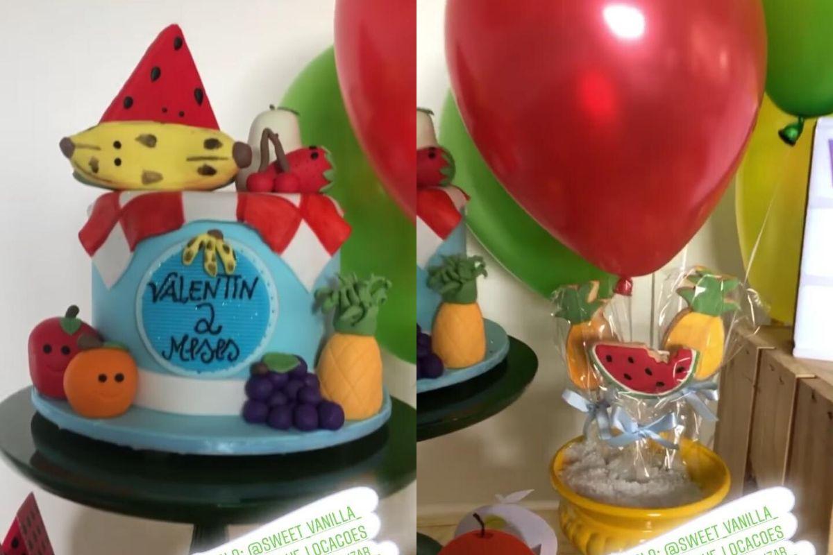“Gente, o tema do mêsversário do Valentin é frutinhas!”, contou Carol Dantas, mostrando todos os detalhes da festa do filho. A decoração era toda feita de acordo com o tema, repleta de bananas, melancias, abacaxis e outras frutas espalhadas na mesa de doces.