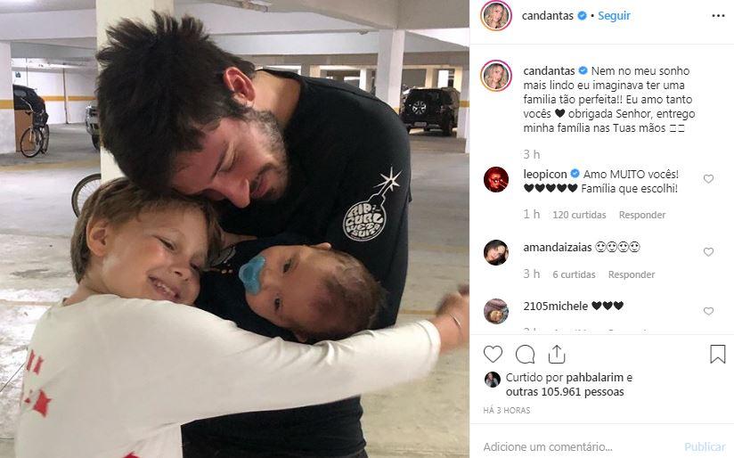 Na foto, Davi Lucca e Vini Martinez abraçam Valentin (Foto: Reprodução / Instagram @candantas)