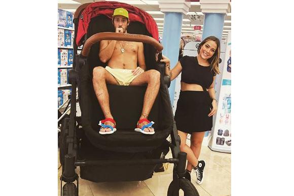 Carol postou uma foto ao lado do noivo, que está sentando em carrinho de bebê gigante e assumiu: “Mamãe realizada, é mamãe que vem aqui. Sai daqui com todas as coisas da minha lista e com varias novidades, tivemos o atendimento VIP (qualquer pessoa pode ter esse atendimento)! Um dia super produtivo, até meu bebezão amou, né @martinezvini ? ”