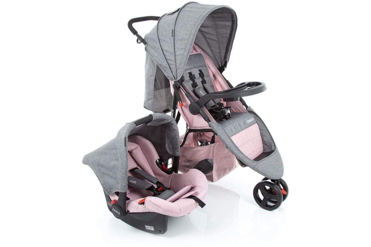 Esse é um carrinho com bebê conforto que tem três rodas e trava de movimento nas rodas frontais. Disponível nas cores rosa, preto e cinza mescla, ele possui cinto de segurança de cinco pontos e assento com múltiplas funções de reclínio. Também tem uma bandeja com porta copos e suporte para objetos na parte da frente. O bebê conforto possui uma almofada redutora acolchoada extra, que é removível e lavável. Ele pode ser encaixado no carrinho ou instalado no carro. Para comprar pela Amazon, é só clicar AQUI.