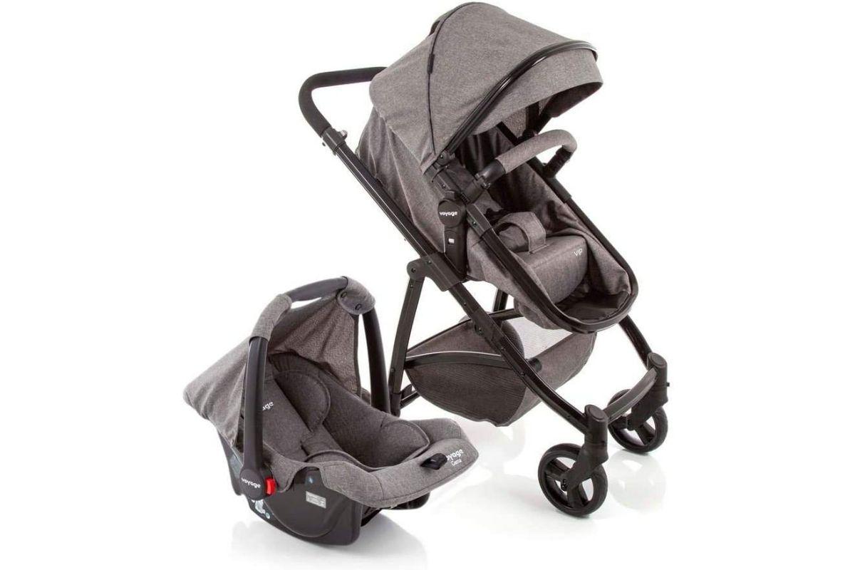 Um conjunto composto por um carrinho estilo moisé, que tem assento reversível e três posições de inclinação, além da barra frontal removível e acolchoada, e também pelo bebê conforto acoplável que permite transportar o bebê de forma prática. As rodas do carrinho são grandes e possuem suspensão, que trazem estabilidade para usar em vários tipos de terreno. Ambos possuem capota retrátil. Para comprar pela Amazon, é só clicar AQUI.