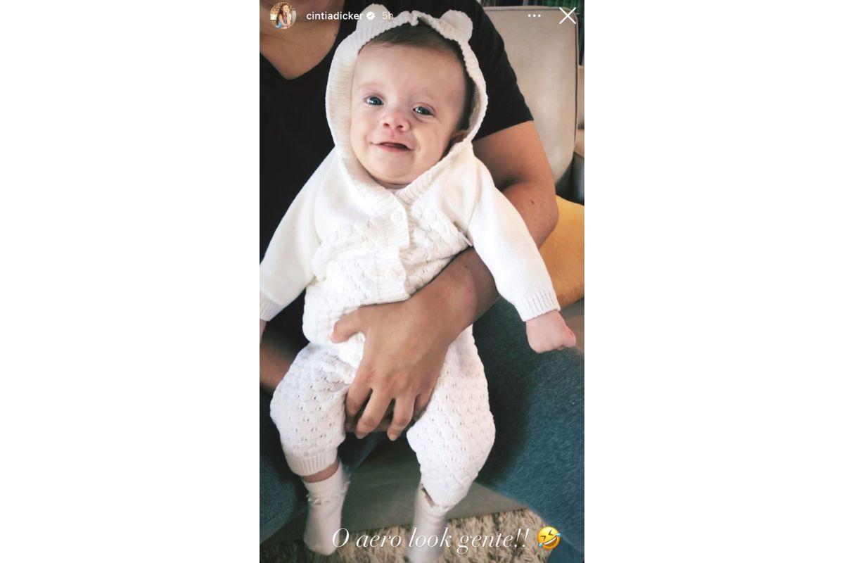Nesta quarta-feira, dia 26 de abril, a modelo Cintia Dicker usou as redes sociais para compartilhar um registro inédito da filha. Aurora está completando 4 meses hoje e a mãe fez questão de compartilhar na rede social o look que a filha usará para celebrar a data especial. A bebê é fruto do atual relacionamento com o surfista Pedro Scooby