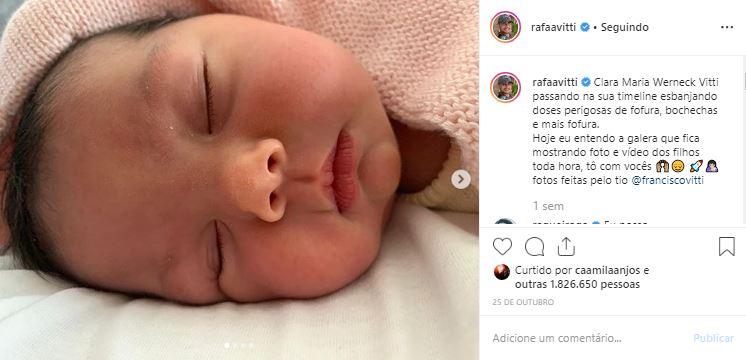 Clara Maria chegou para fazer Tatá Werneck e Rafael Vitti suspirarem (junto com a internet inteira) (Foto: reprodução / Instagram)