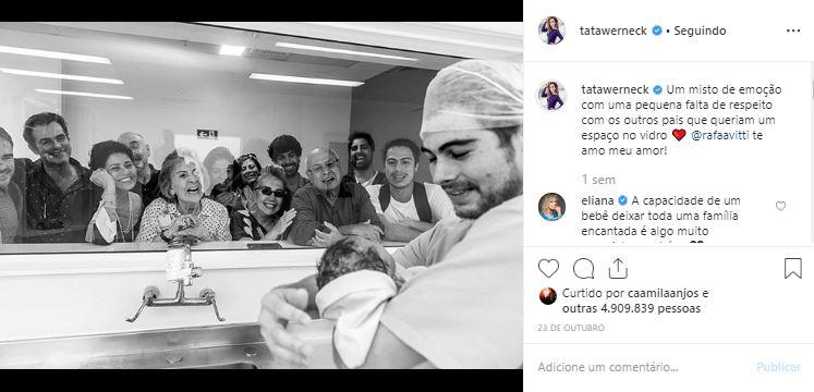 • Tatá mostrou como a família do casal também se apaixonou pela criança à primeira vista e ainda teve tempo para fazer uma piadinha de leve.