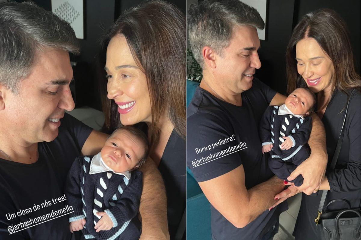 “Bora para o pediatra?”, escreveu ela na legenda do post feito através dos stories do Instagram. Na sequência, a atriz mostrou outra foto dela, Luca e Jarbas mais de perto e escreveu: “Um close de nós três!”. O bebê aparece com um lindo conjunto azul, enquanto os pais o admiram sorridentes.