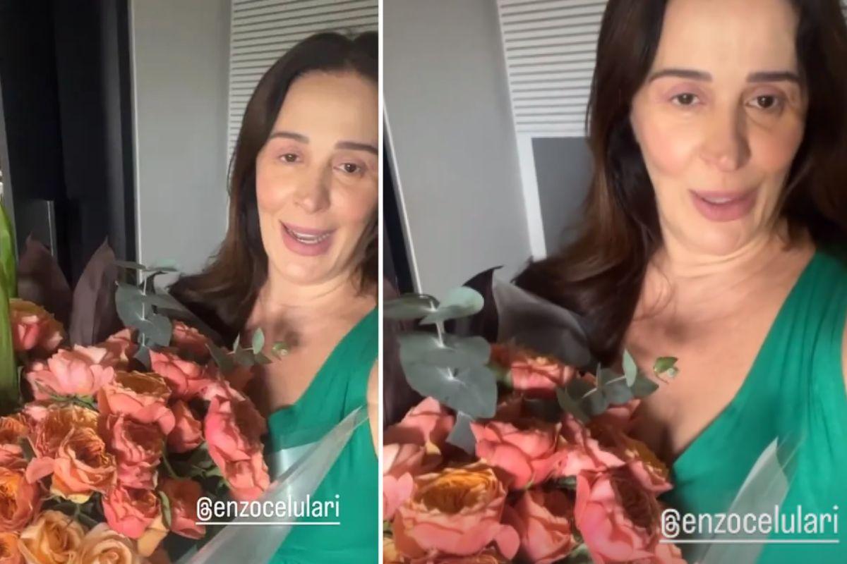 Nas redes sociais, ela apareceu emocionada ao receber o buquê e agradeceu o filho pelo presente. “Estou chorando, sou mãe babona. Olha o que eu acabei de ganhar do meu filho, Enzo. Para mostrar para vocês como um filho tem que tratar uma mãe, principalmente um filho homem, que tem que valorizar a mulher”, disse Claudia.