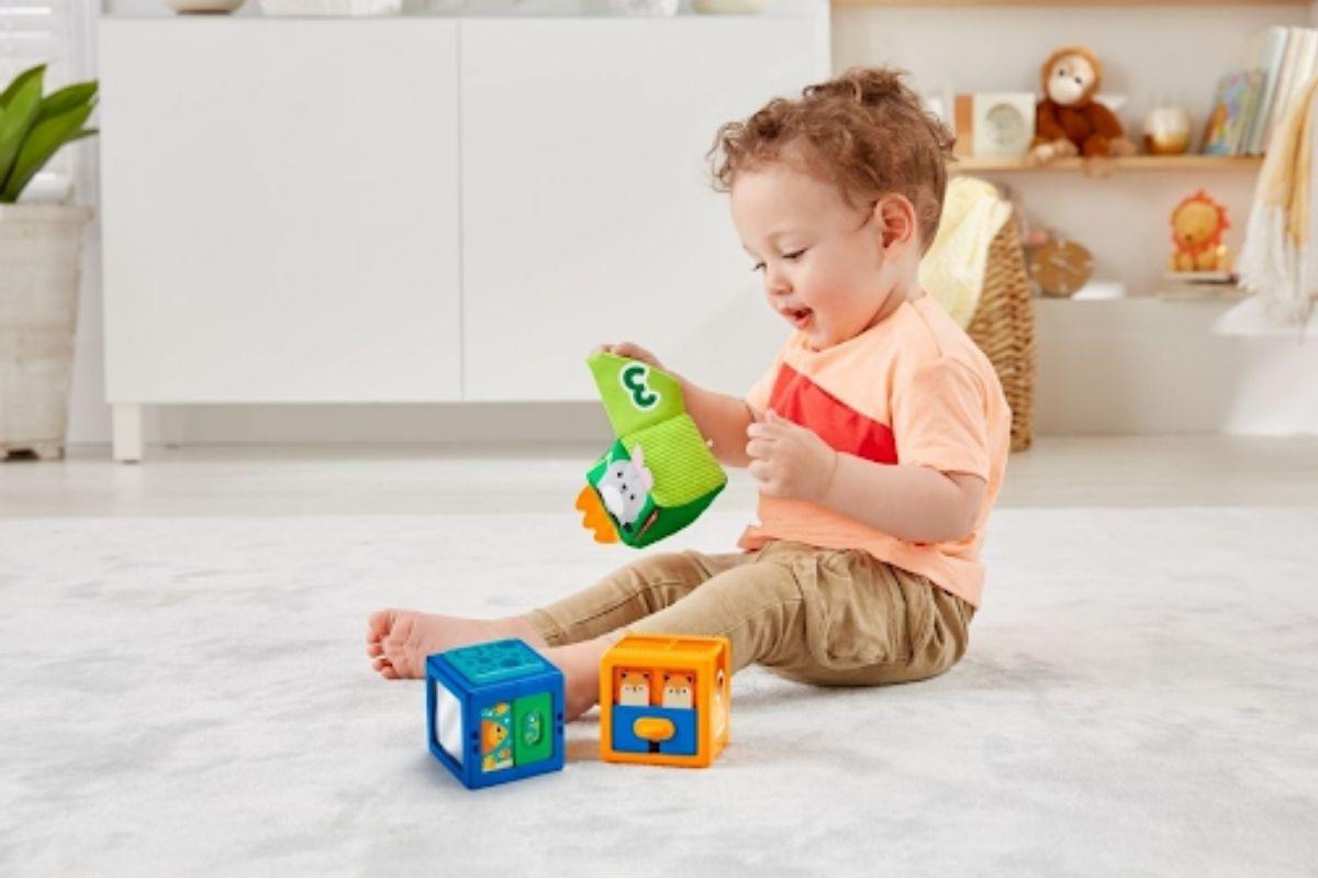 Em um conjunto de três blocos, que possui números, animais, texturas, cores e atividades, o bebê pode explorar os sentidos em uma experiência única. Durante a brincadeira, diversas habilidades são desenvolvidas enquanto ele joga, vira, aperta, amassa, chacoalha e desliza as peças. Cada bloco possui seis lados com jogos divertidos, incluindo números, personagens amigáveis, surpresas escondidas, bolas de chocalho e um espelho.