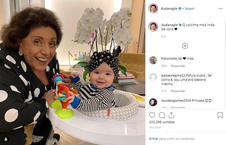Na segunda-feira (27), Duda Nagle mostrou que a mãe, Leda Nagle, é a maior avó coruja.
