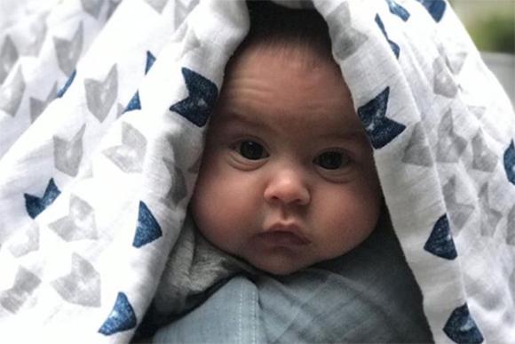 O ator costuma compartilhar vários cliques fofos do filho. Neste, a legenda contém uma pequena declaração para pequeno o bebê, que aparece na foto de baixo de um pano.