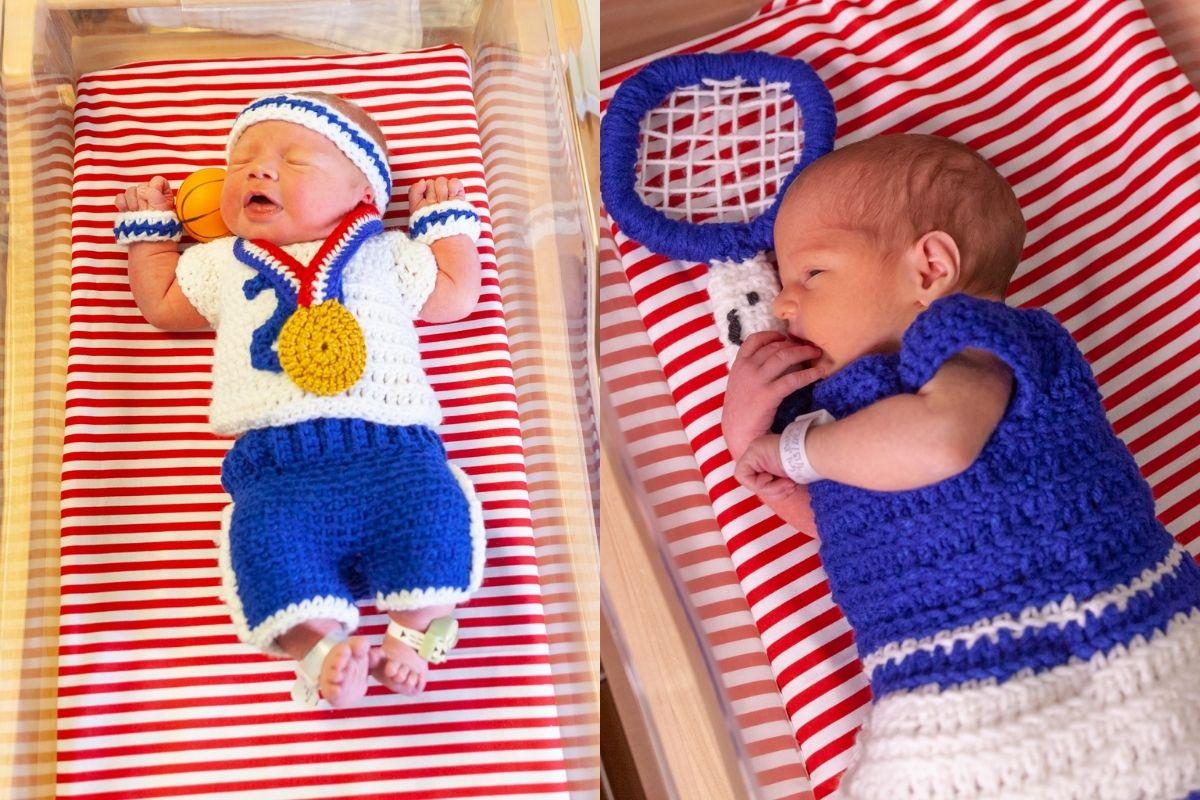 Saint Luke’s chamou os bebês de “mini equipe dos EUA”. Eles contaram que as enfermeiras ajudaram a criar as roupas de crochê feitas a mão com uma variedade de esportes, como natação, levantamento de peso, boxe, basquete, ginástica e tênis. Para eles, os recém-nascidos seriam os “atletas” e os pais os “juízes”, que vão dar aos filhos a pontuação perfeita.