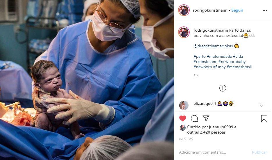 Rodrigo Kunstmann fez as fotos do parto de Isabella e a menina conquistou a internet com a expressão de brava (Foto: reprodução / Instagram / @rodrigokunstmann)