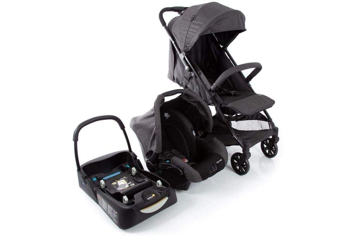 Além do carrinho, acompanha o bebê conforto e uma base veicular. Possui múltiplas posições de encosto, permitindo que a criança possa ficar deitada ou sentada, sendo assim perfeito para uso até os 3 anos de idade. O carrinho tem fechamento compacto com apenas uma mão, sendo muito prático, e cinto de segurança de cinco pontos com três diferentes ajustes de altura.