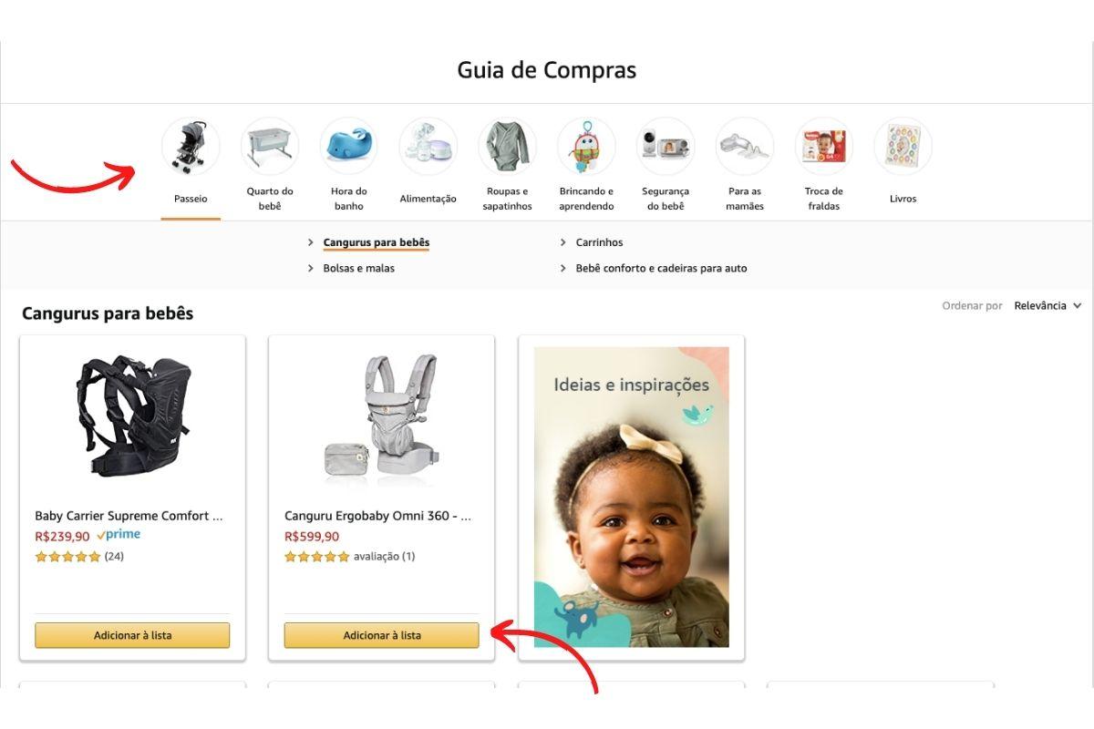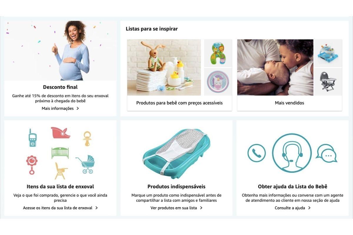 Você sabia que a Amazon tem um recurso que facilita a criação do enxoval do seu bebê? A ferramenta gratuita permite que a família crie uma lista de produtos, que pode ser pública, particular ou compartilhada apenas por meio de um link personalizado.