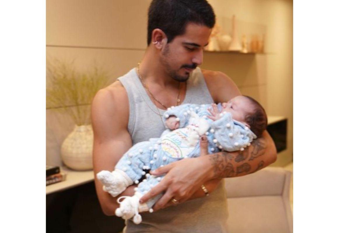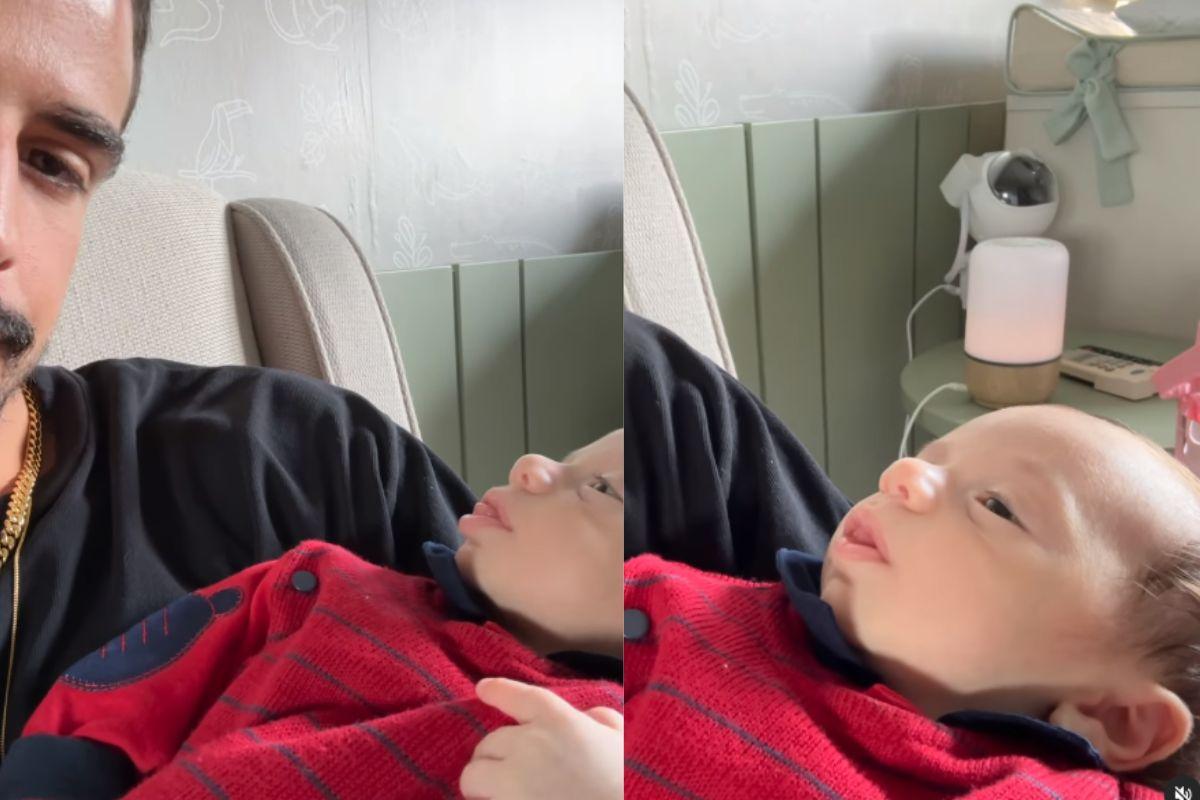 Nas imagens ele aparece sentado em uma poltrona com Luca no colo. “Príncipe meu”, declarou o irmão na legenda da publicação no Instagram. Em seguida ele compartilhou um vídeo mandando um beijo para o bebê.