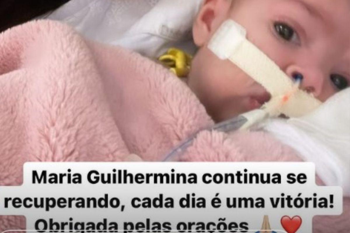 “Maria Guilhermina continua se recuperando. Cada dia é uma vitória! Obrigada pelas orações”, disse a mãe na legenda de sua publicação na sessão dos stories da rede Instagram.