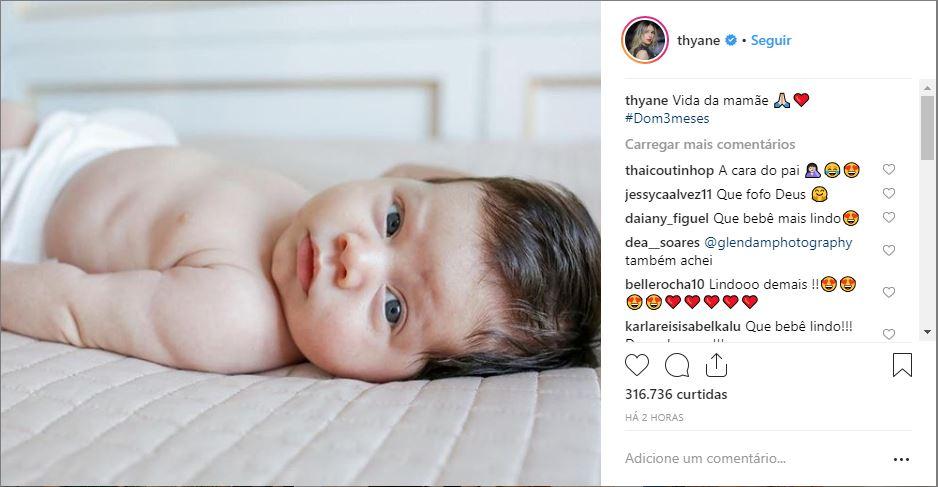 Thyane Dantas e Wesley Safadão comemoraram os 3 meses do filho Dom com um ensaio fotográfico lindo! Thyane postou a foto no Instagram, em homenagem ao filho, e se declarou dizendo: “Vida da mamãe!”.